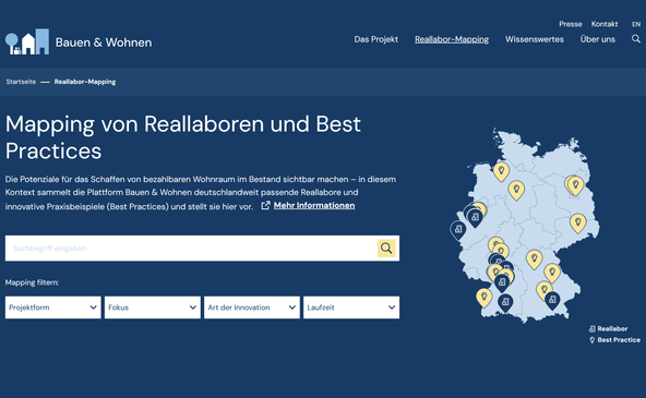 Bestandsgebäude samt seinem Umfeld vitalisieren und einen Wohn-Mix gestalten, der bezahlbar und lebenswert ist: Mehr Beispiele für Reallabore mit Potenzial für die Schaffung von bezahlbarem Wohnraum im Bestand und Best Practices gibt es auf unserer digitalen Landkarte, dem Reallabor-Mapping.